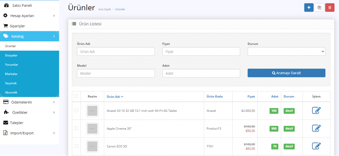 | HIZLI ÜRÜN EKLEME MODÜLÜ: | |