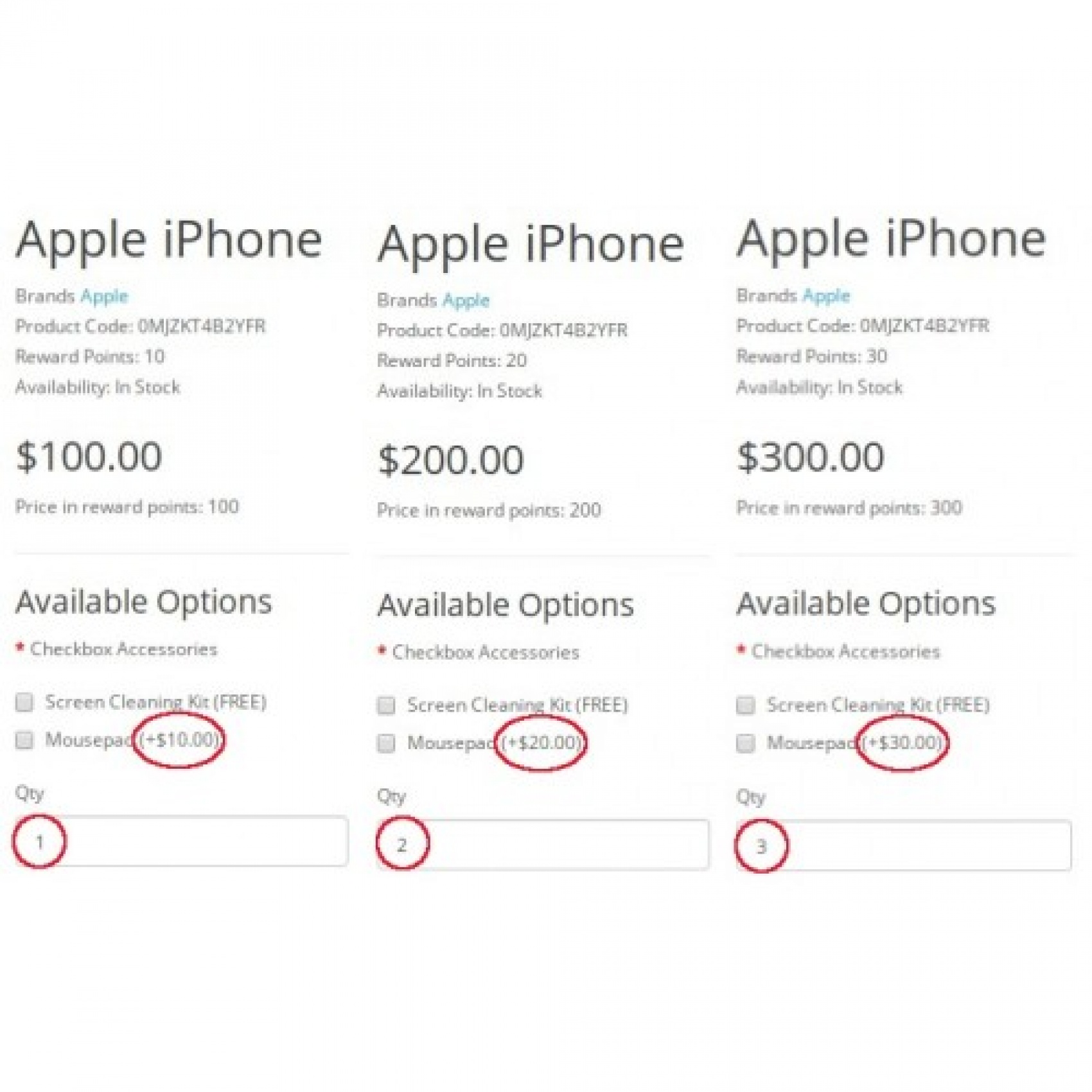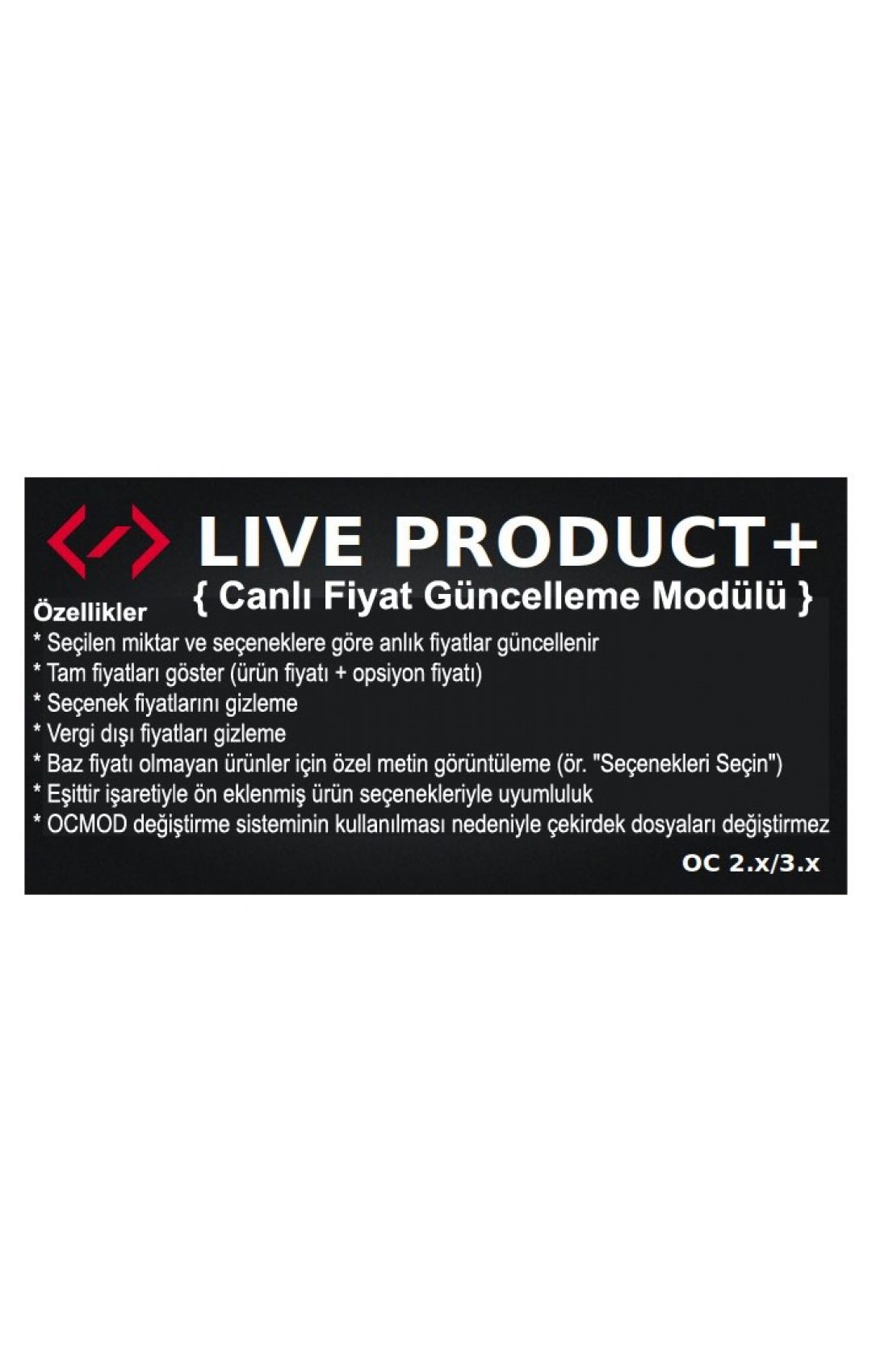 "Canlı Ürün +" uzantısı OpenCart CMS 2.x-3.x sürümleri içindir. Seçilen seçeneklere ve miktara bağlı olarak fiyatların canlı olarak güncellenmesine izin verir. AJAX'a göre.