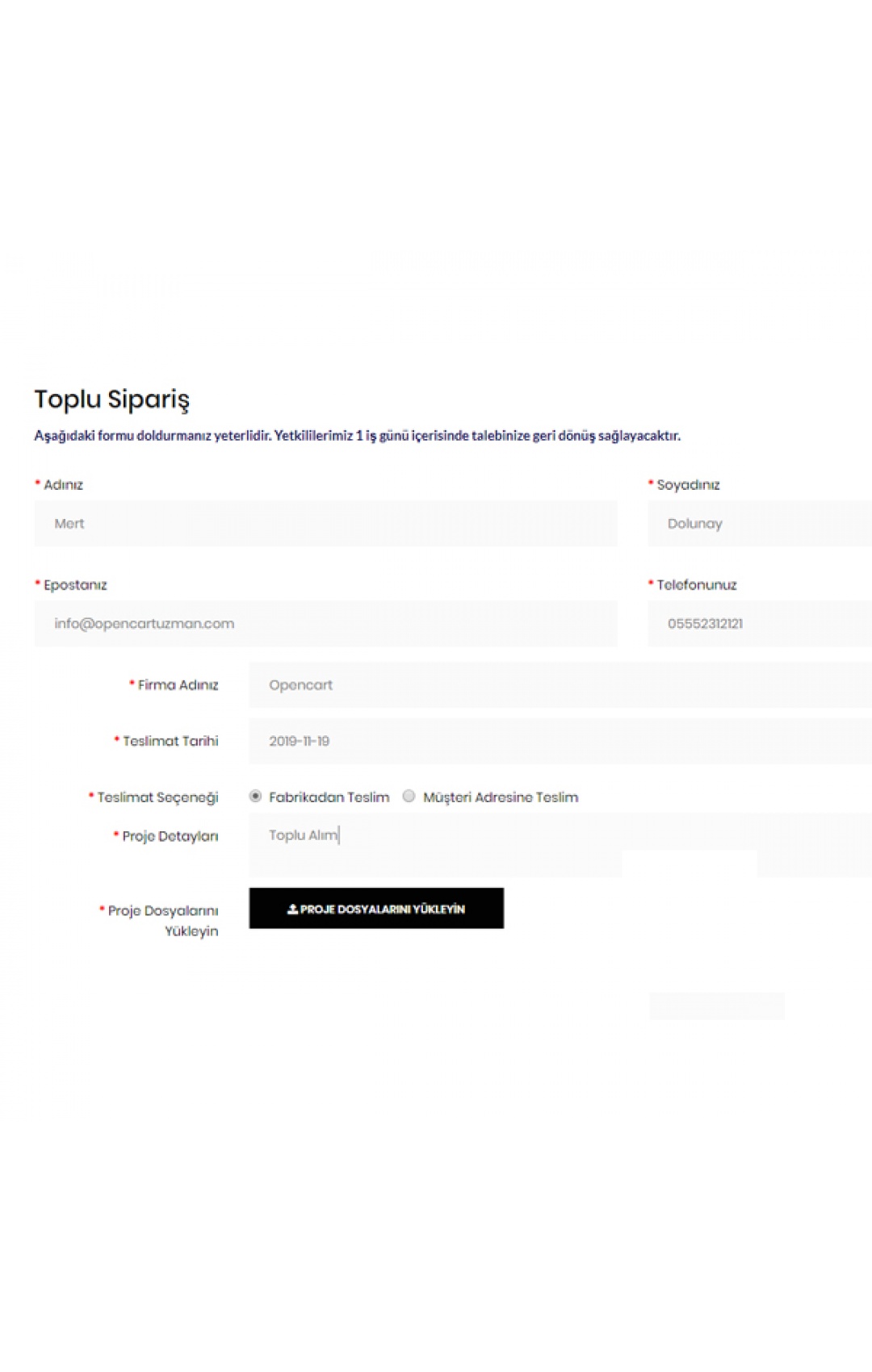 Toplu siparişleriniz için isminde bir form oluşturup ürün sayfasının sağ kısmına ekleyebilirsiniz.