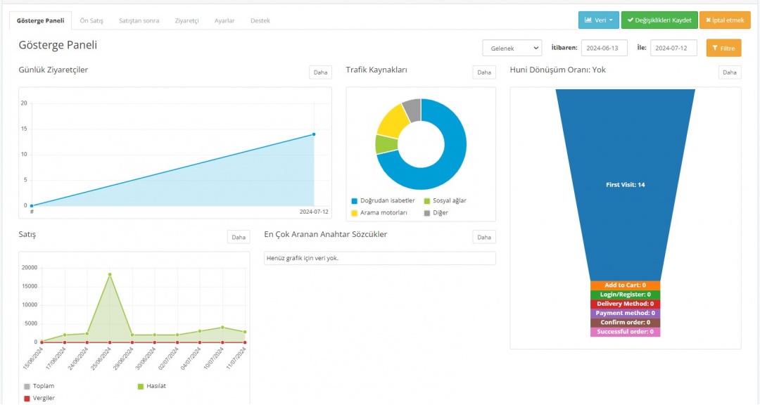 ★ Sepete en çok eklenen ürünler, istek listesi ürünleri, müşteri eylemleri, benzersiz ziyaretler, sayfa gösterimleri ve yönlendirenler hakkında veri toplama