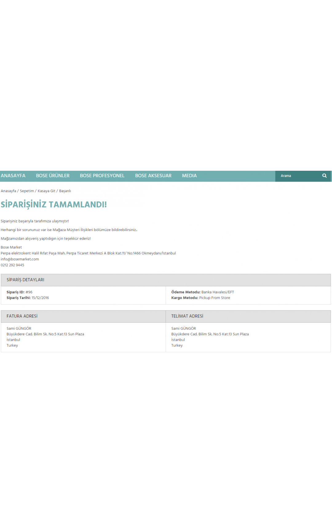 • Opencart Sipariş Başarılı Sayfası
