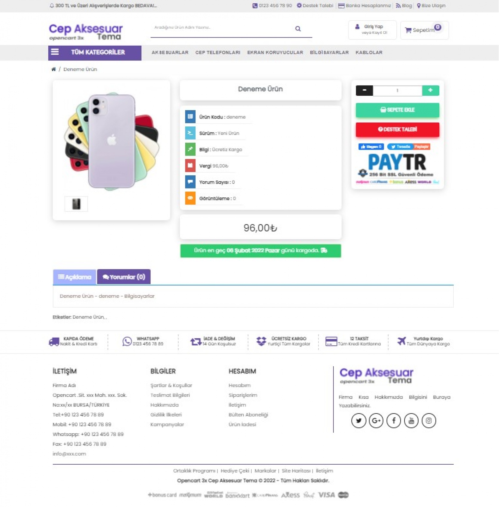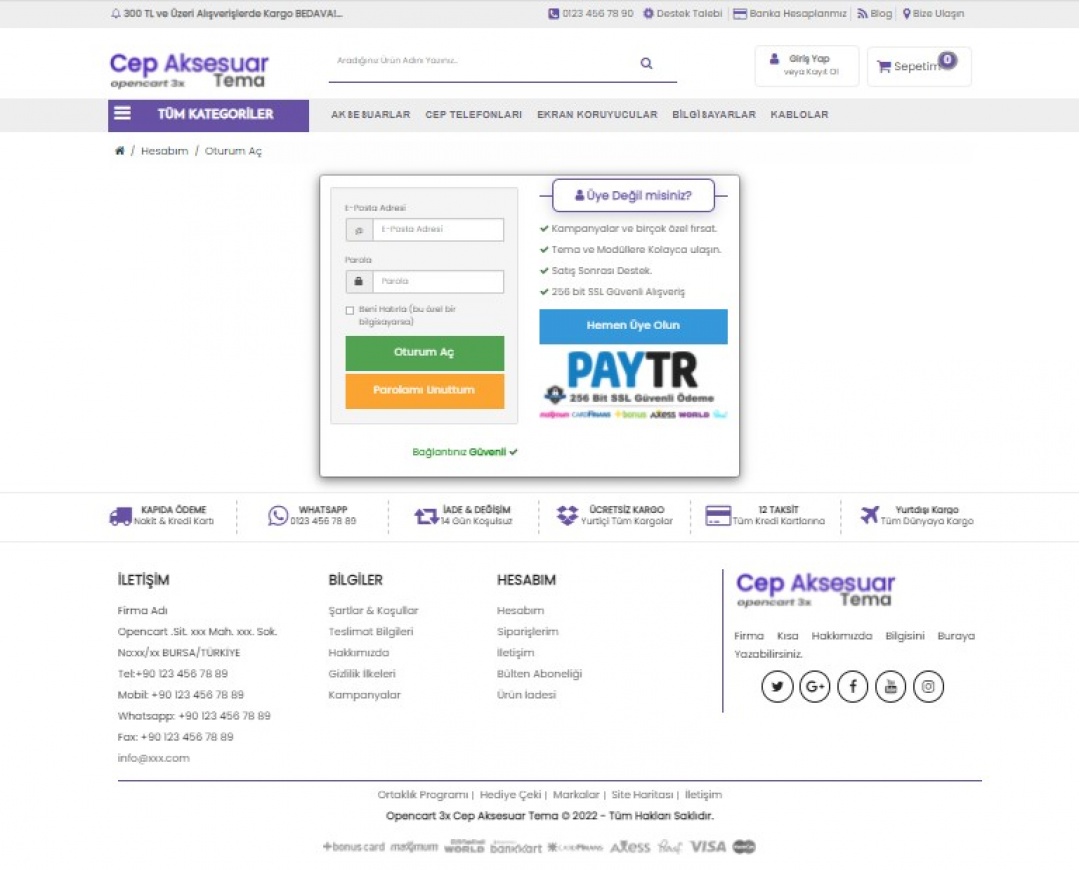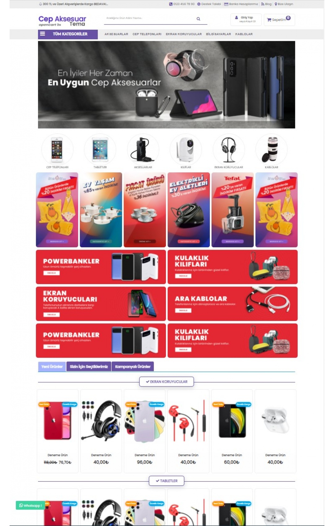 Opencart 3.x Cep Tel Aksesuar Full Paket