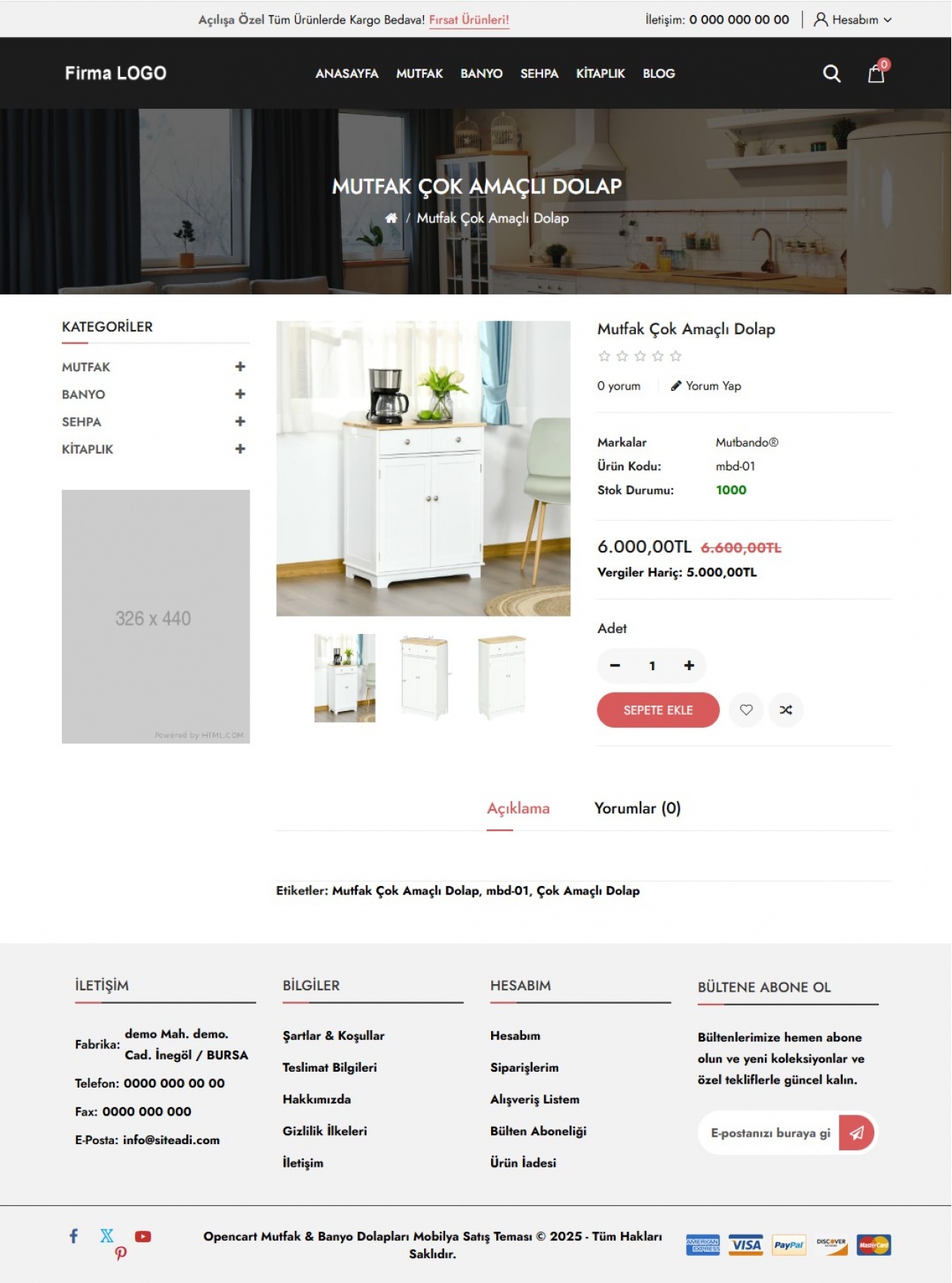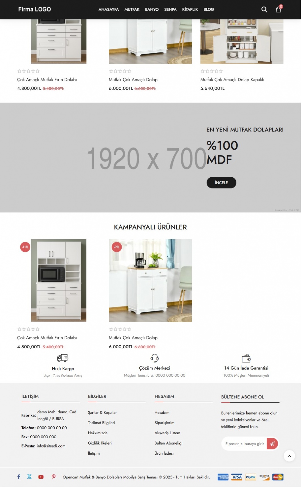 Opencart 3.x Mutfak Banyo Mobilya Teması