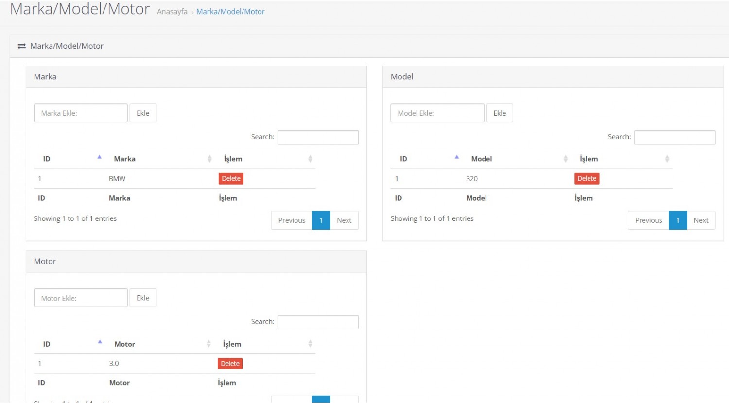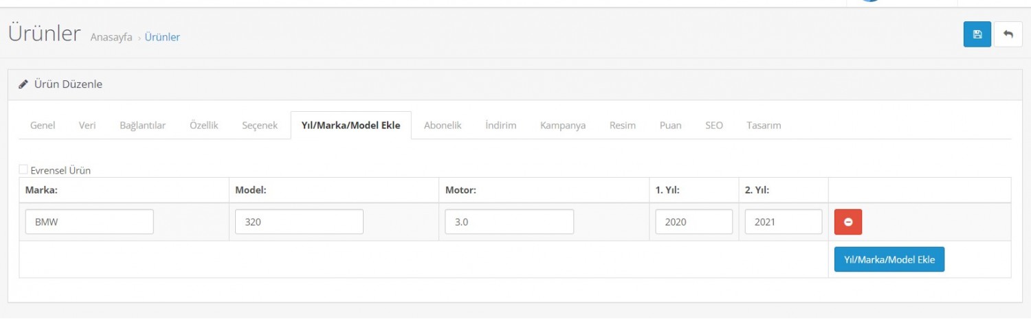 Yedek parça bilgileri seçilen ürün sayfasında gösterilir. Motorun, modellerin, markanın, üretim tarihinin kaydedilmesi kolaydır.