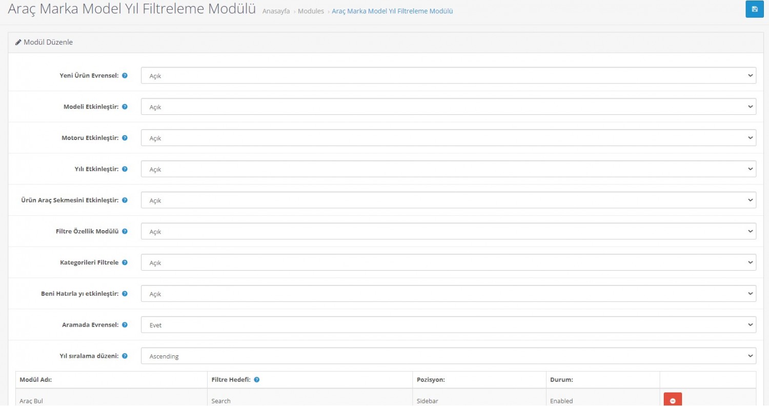 Bu modül, web sitesinin ürün sayfasında yedek parça detaylarını göstermesine yardımcı olur. Yedek parça satan web sitelerinin, müşterinin gereksinimlerine en iyi ürünü gösterebilmesi için genellikle yedek parça spesifikasyonlarının filtresini görüntülemesi ve vermesi gerekir.